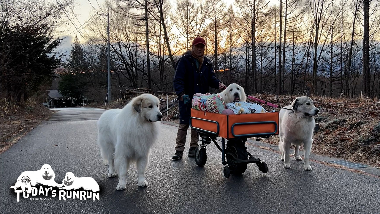 例年だと流石のグレートピレニーズでも寒すぎるルンルン地方ですが、今冬は暖冬のため外気温は0〜5度程度で、ルンルン達はとても過ごしやすいようです。アウトドア派のルンルンはほとんどの時間を外で過ごしています。