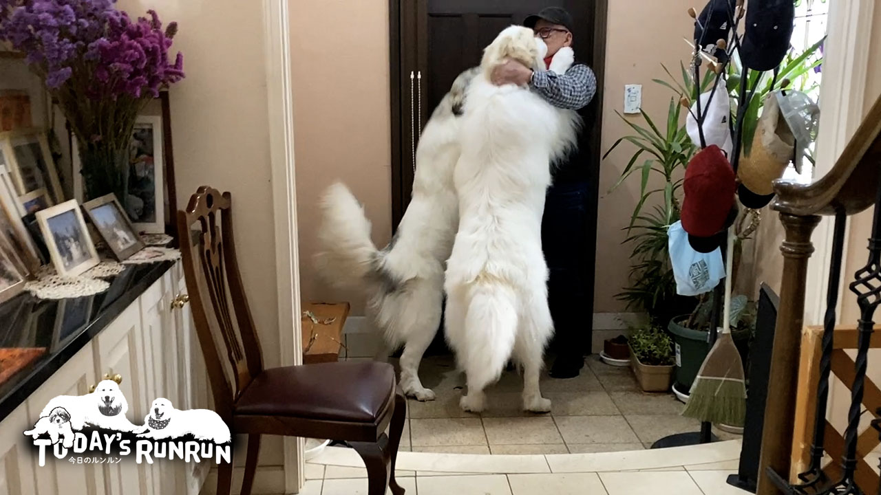 グレートピレニーズは独立心が強く飼い主以外にはあまり懐かない犬種のため、個体によってはプイッと無視する子もいます。ルンルン、アラン、ベルは人間がとても好きで比較的社交的な方で、特に相手が知っている人だととても喜びます。