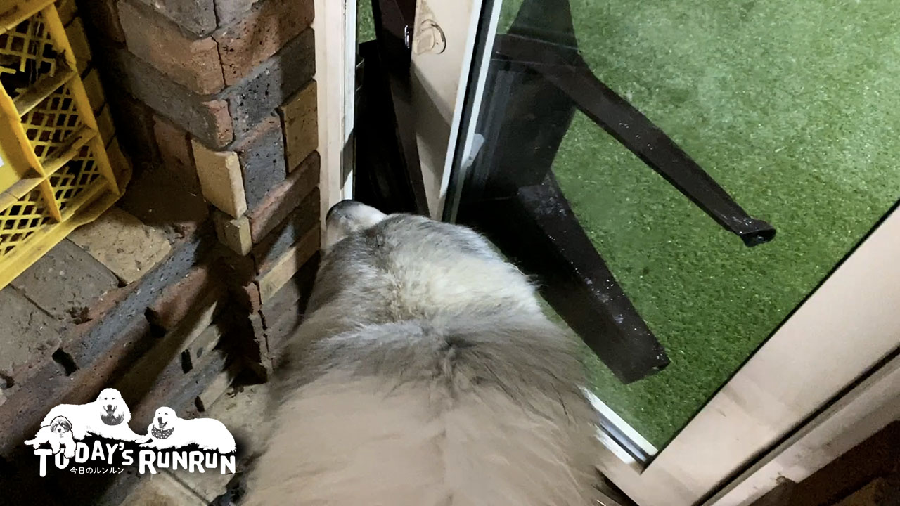 アランは家の中の物を外に持ち出してドッグランに放置するのが好きでしたが、ベルの場合は逆で外にある物を室内に持ち込むのが好きなようです。庭に落ちている大きな木の枝を運び込んだこともありました。こんなの持ってきたよ〜と人間に見せたいのかもしれません。