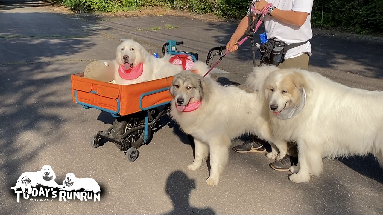 グレートピレニーズはヨダレの多い犬種のためよだれで胸元や前足が汚れてしまいます。ヨダレの汚れはなかなか取れずブラッシングも時間がかかるため、ルンルン家ではスタイ(ヨダレかけ)をするようにしています。