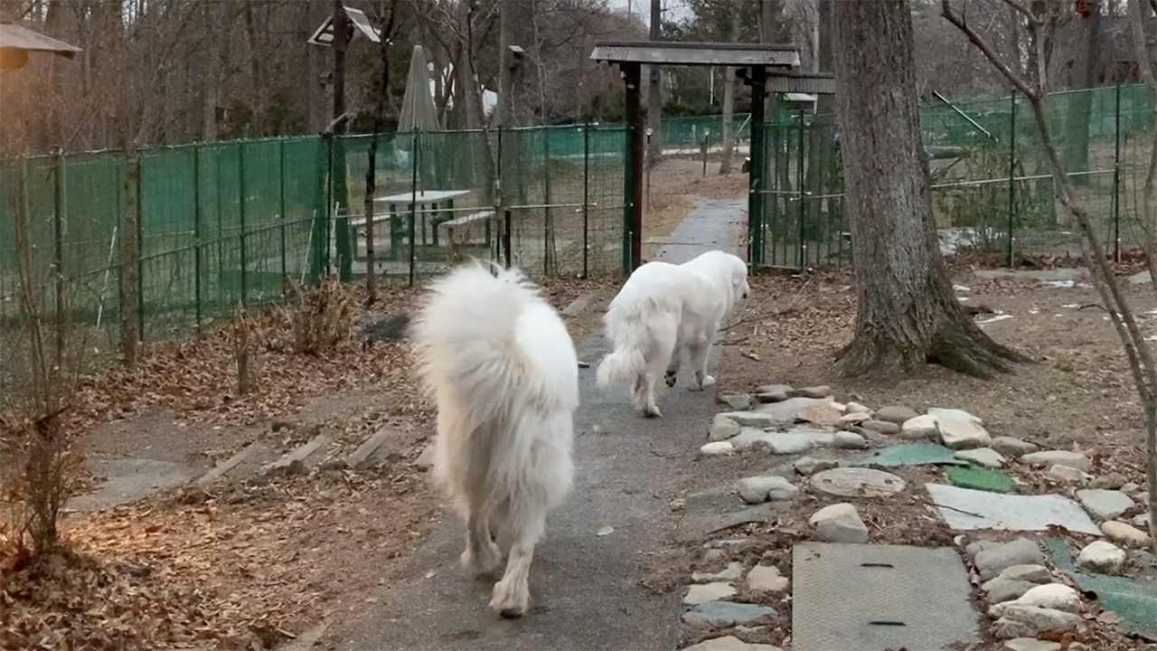 ルンルンとアランの冬の朝の様子です。だいたい毎朝こんな感じです。