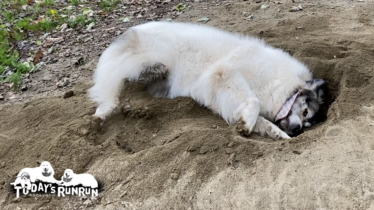 穴掘りに夢中なベル。息を切らして体力の限界まで穴掘りをします。