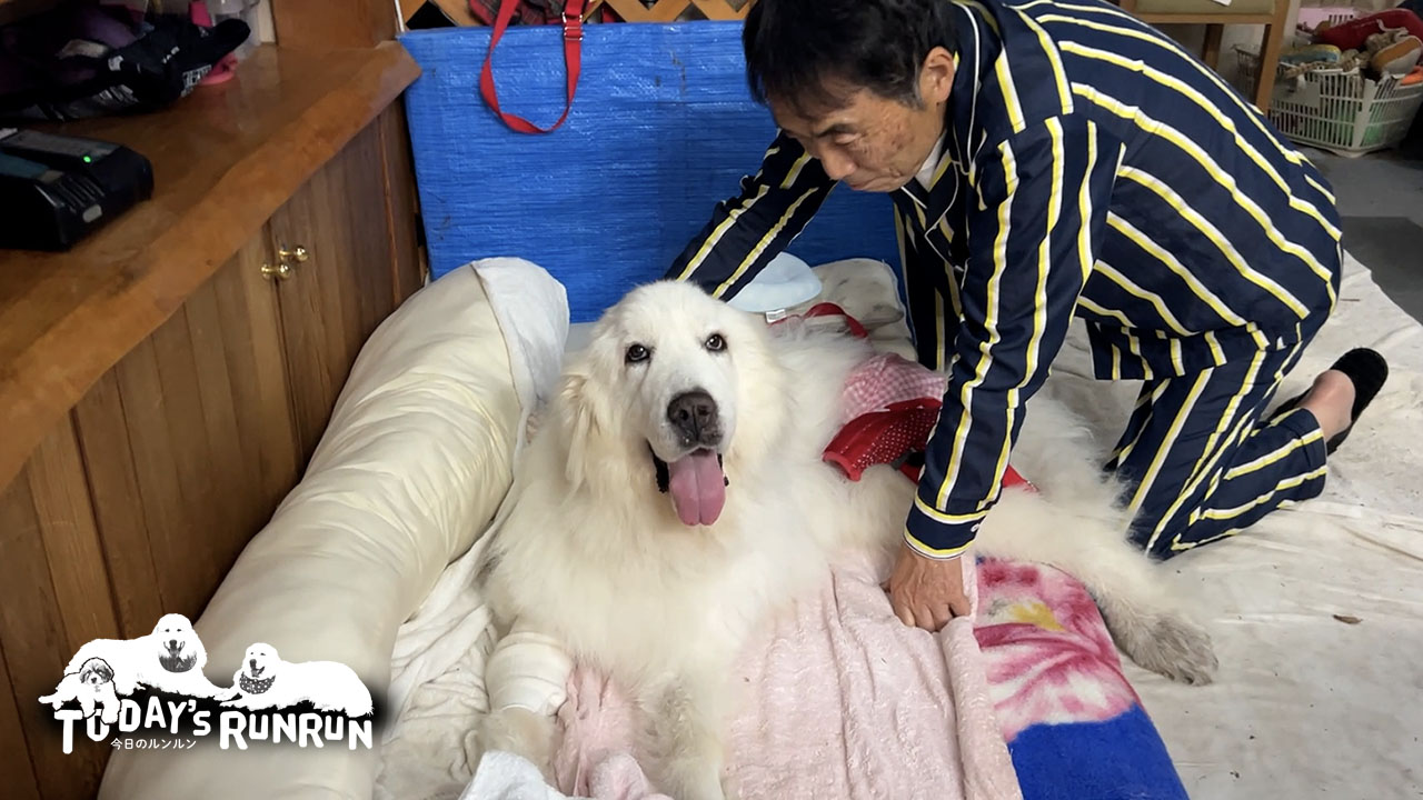 グレートピレニーズは暑いのは苦手ですが小豆温灸で体の芯が温まるのは気持ちがいいようです。体が芯から温まると血行が良くなるそうです。ルンルンは後ろ足が弱ってしまっておりほとんど動かせず、足の先が冷えてしまう事があります。そんな時は小豆温灸とマッサージで血流を良くしてやると、足先も暖かさを取り戻します。