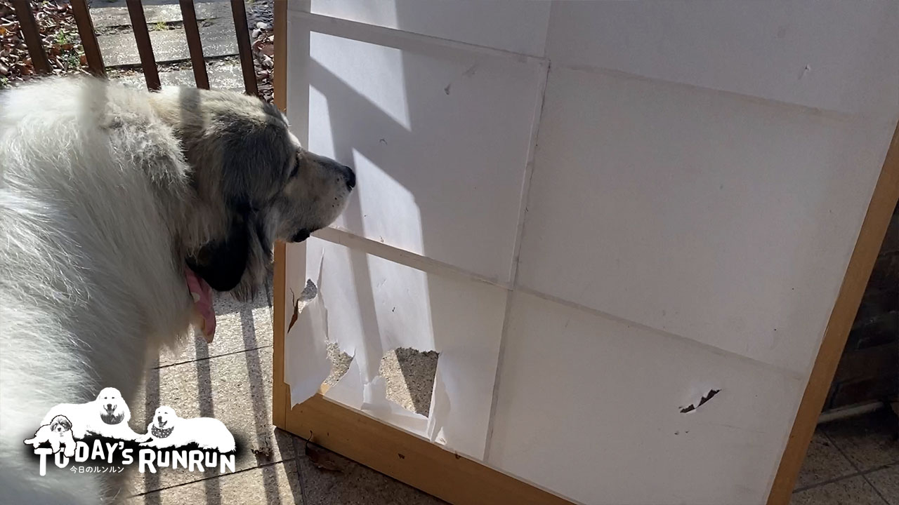 ちょいちょい破られる和室の入り口の障子。アランもベルも過去に障子を破いているためどちらかが犯人なのは間違い無いのですが、目撃者がいないため犯人の特定ができませんでした。最近ベルは全く和室には寄り付かないため、アランの方が怪しいのですが…真相は闇の中です…