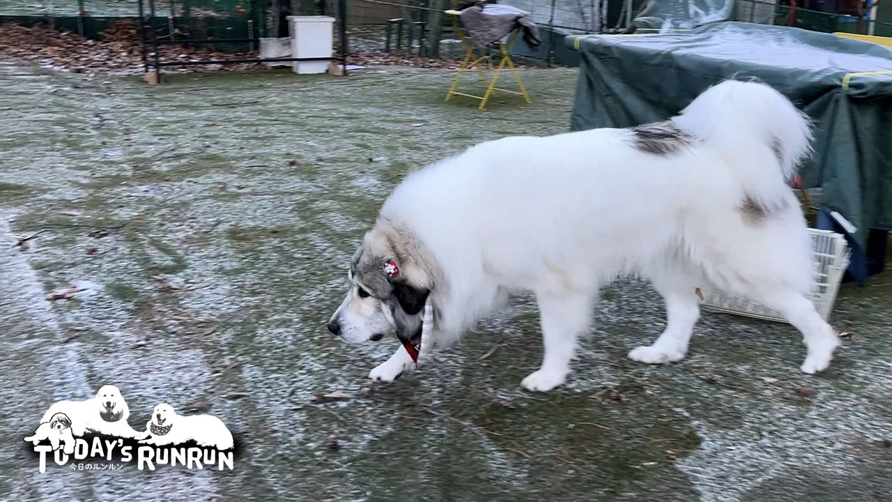 冬でシーズンオフとはいえドッグランで落ち葉に潜ったりゴロゴロ転がったりして遊ぶベル。真っ白なベルが見られるのは月に3日間程度です…