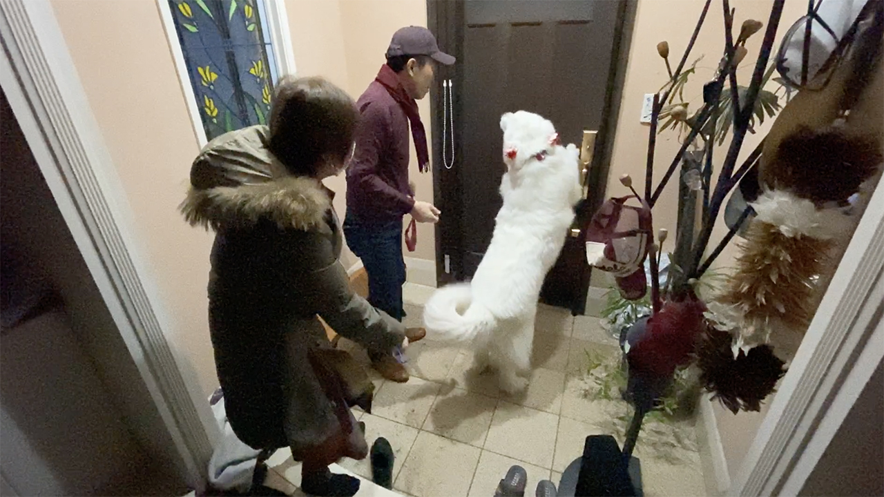 人間が何やら準備をしているので、お出かけを察知し置いていかれないように人間の後を付け回すルンルンです。お父さんが車へ準備に行くたびに玄関までついてきて連れて行って欲しいアピールを繰り返しました。