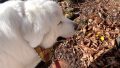 いただいたおもちゃを早速持ち出して遊ぶアランです。大きなぬいぐるみから小さなぬいぐるみまで、新しい物を一通りドッグランに持ち出し振り回して遊んでいました。くださったみなさんありがとうございます!