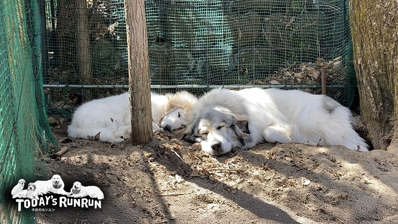 ルンルン地方も日中は20℃近くまで気温が上がるようになってきました。5℃が適温と言われるグレートピレニーズには少し暑い季節となりましたが、ルンルン家のドッグランには涼しい風の通る場所がいくつかあって、アランとベルとリリーはぞれぞれがお気に入りの涼しい場所で過ごしています。