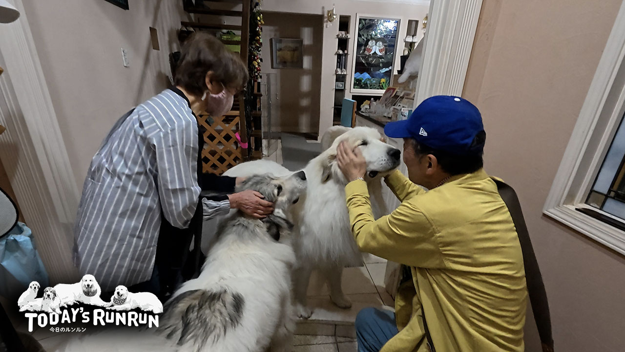 人間のお出迎えはお父さんとお母さんに8割方時間を使うアランとベルとリリー。息子(格下)にはほとんど近寄りません…