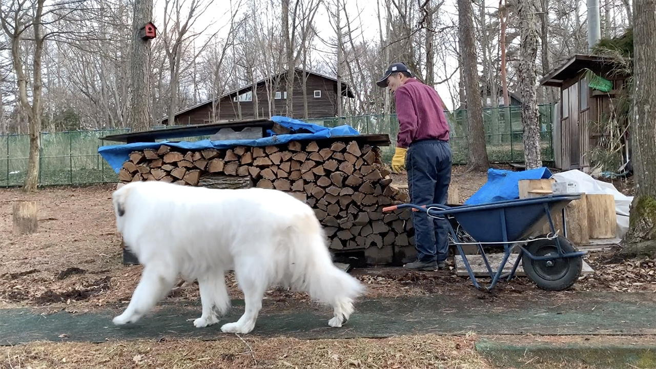 ルンルンとアランは平日の日中は町の家にいる事が多いです。毎朝お父さんと一緒に山の家から職場の近くにある町の家に移動します。昼過ぎの15:00ぐらいになるとお父さんが仕事から帰り町の家で散歩をします。