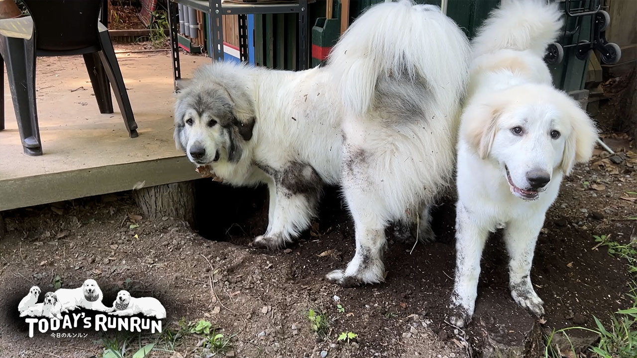 6月のはっきりしない天気で何となく雨が降っているルンルン地方。土が柔らかくなるためベルとリリーは穴掘りに夢中です。雨上がりの土は汚れるのですが…本人達が頑張っているので自由に掘らせています。リリーはいつもベルの近くに居て、穴掘りする時も一緒です。