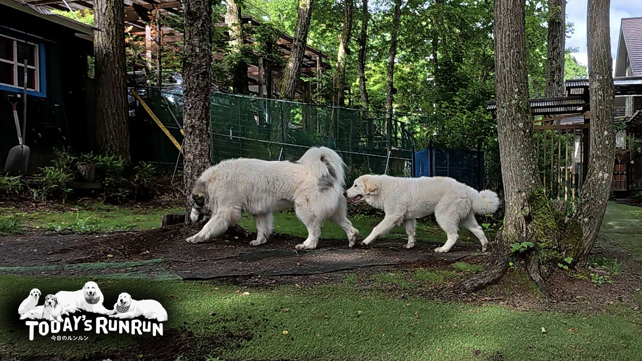 最近リリーは少しベルにマウントを取ろうとする事があります。ベルの背後から後ろに乗ろうとしますが、ベルはヒラリとかわしています。あまりにリリーがしつこいとベルは唸って怒る事もあります。ベルはアランほど甘くは無く、気に入らないとはっきりと拒否をして威嚇をします。時には吠えてリリーをねじ伏せる事もあります。