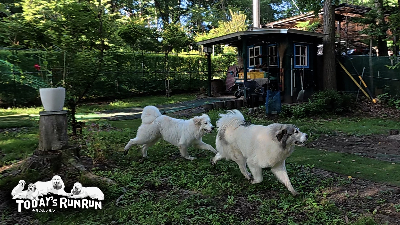 気配や音にとても敏感なベル。少しでも異常を感じたらドッグランに駆け出し番犬を頑張ります!リリーも後に続きますが、リリーは比較的吠えずにベルの後を走っている事が多いです。リリーは番犬というより走り回るベルを追いかけるのが楽しいようです。
