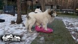 アランの息子、ベルの兄妹(姉弟かも?)のレオ君がブリーダーさんと一緒に遊びに来てくれました!ベルと一緒に生まれた同胎犬です。子犬の時のリボンは茶色だったそうです。アランのベビーお披露目動画で息子(格下)の足に噛み付いたのがレオ君のようです。