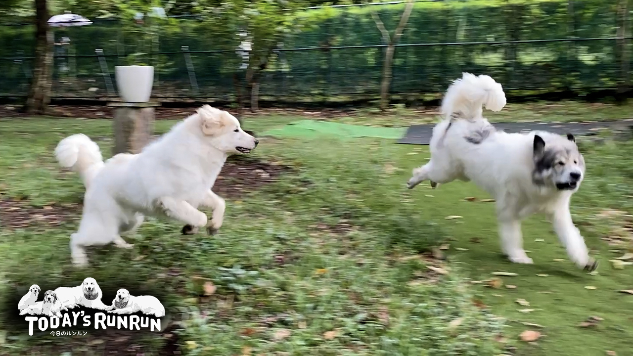少し涼しくなったので番犬を頑張っているベル。圧倒的身体能力で颯爽と駆け抜けます!リリーは着いていかれません!