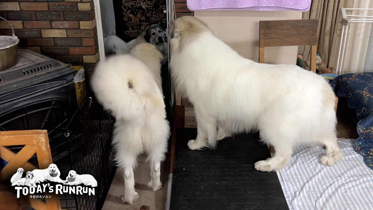 アランとリリーがあまり出動しないのでひとりで一生懸命番犬をしているベル。ドッグランを縦横無尽に走り周り安全が確認できるとゼーゼー息を切らしながら戻ってきます。ベルの番犬のおかげでルンルン家は外敵を寄せ付けず平和が保たれています!