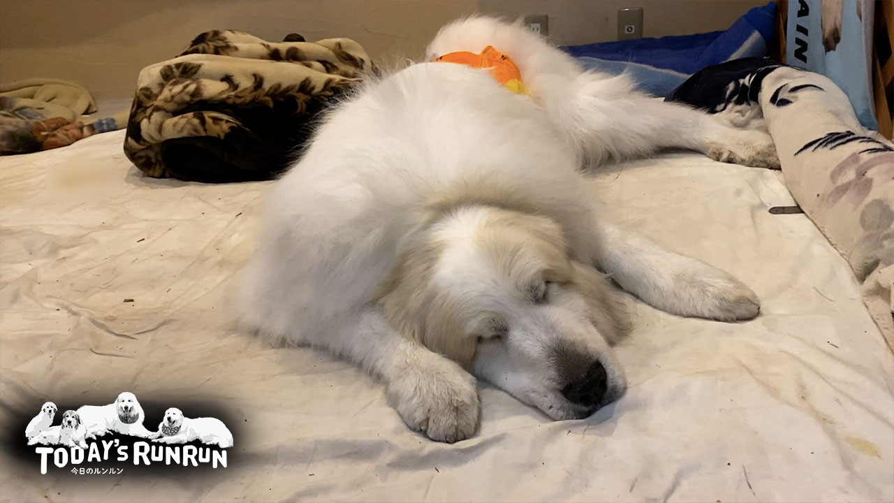 少し前に2日間ほど歩けなかった事があったアラン。後ろの足が少し弱っているので心配しましたが、その後回復し現在では一人で歩けています。日中は母屋からドッグランへ行ったり、和室へいどうしたりと自分で移動しています。体調も足の調子もとても良さそうです。