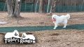 お父さんの部屋のドアをノックしてお父さんを庭に連れ出したルンルン。とても気持ちの良い朝でした。お散歩へいってクッキーちゃんとも遊びました。