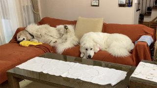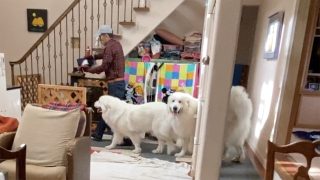 出発が待ちきれなくてお父さんの後をつけるルンルンとアランです。RunRun and Alain can't wait to leave.ルンルンとアランは「おでかけ」と「お留守番」の区別が付きます。今日はお出かけだよというと喜びますし、今日...